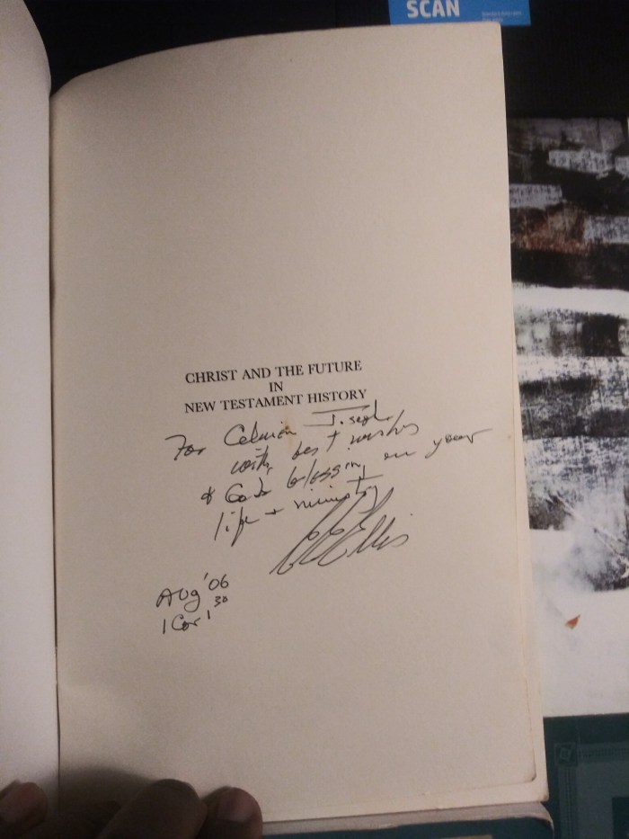 Tonight, as I was browsing through the Biblical Studies division in my home library, my eyes suddenly fell upon my former New Testament teacher’s magisterial work, “The Making of the New Testament Documents” (Brill, 2002). Immediately, my memory revisited the various ways Prof. Earle E. Ellis has influenced my intellectual life as a young scholar in the making and student majoring in New Testament (Th. M.) at Southwestern Baptist Theological Seminary (SWBTS), in the academic years 2005-2007.